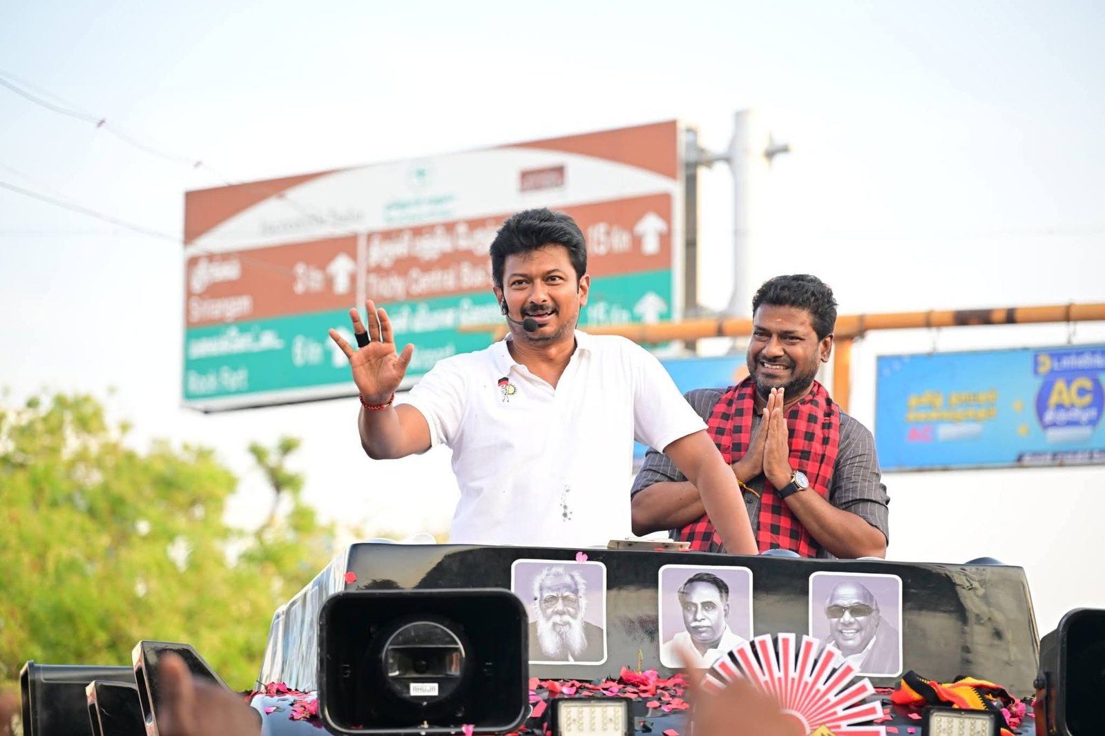 மணச்சநல்லூரில் உதயசூரியன் வேட்பாளர் கதிரவனுக்கு ஆதரவாக துணை முதல்வர் உதயநிதி ஸ்டாலின் தீவிர வாக்குச் சேகரிப்பு!