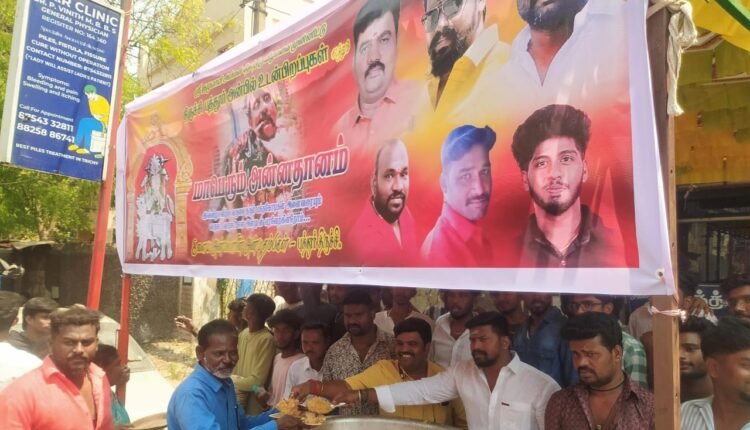 திருவிழாவை முன்னிட்டு பல்வேறு இடங்களில் அன்னதானம் வழங்கும் நிகழ்ச்சி நடைபெற்றது. அந்த வகையில் புத்தூர் நால்ரோடு அருகே இளைய அன்பிலாரின் அன்புத் தம்பிகள் குழு சார்பில் 14ம் ஆண்டு மாபெரும் அன்னதானம் நடைபெற்றது.