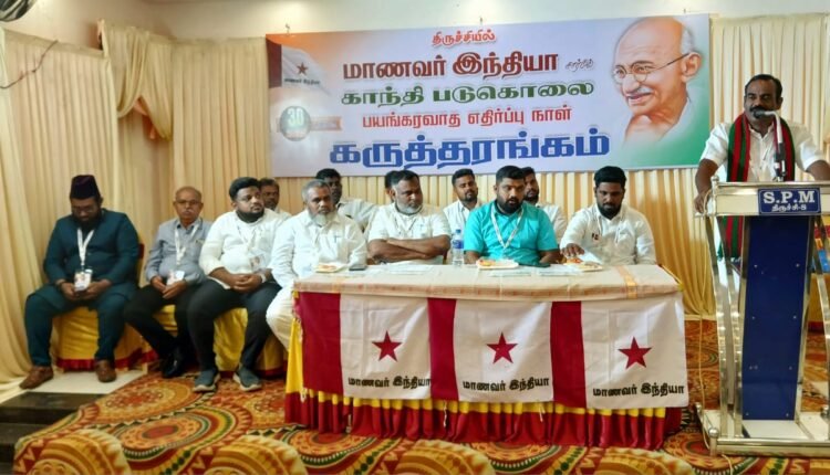 காந்தி படுகொலை செய்யப்பட்ட ஜனவரி 30 ஆம் தேதியன்று மாணவர் இந்தியா சார்பில் பயங்கரவாத எதிர்ப்பு நாளாக கடைப்பிடிக்கப்பட்டு வருகிறது. அன்றைய தினம் மாணவர் இந்தியா சார்பில் பயங்கரவாத எதிர்ப்பு நாள் கருத்தரங்கம் நடைபெறும். அந்த வகையில் காந்தி நினைவு தினமான நேற்று திருச்சி பால்பண்ணை அருகே காந்தி படுகொலை பயங்கரவாத எதிர்ப்பு நாள் கருத்தரங்கம் நடைபெற்றது.