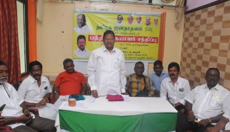 தமிழக ஜனதா தளத்தின் மாநில நிா்வாகிகள் கூட்டம் திருச்சி மத்திய பேருந்து நிலையம் அருகேயுள்ள தனியாா் விடுதியில் நடைபெற்றது. இதில் மாநிலத் தலைவர் ராஜகோபால் கலந்து கொண்டு ஆலோசனைகளை வழங்கினார். தொடர்ந்து அவர் செய்தியாளர்களிடம் பேசுகையில்….