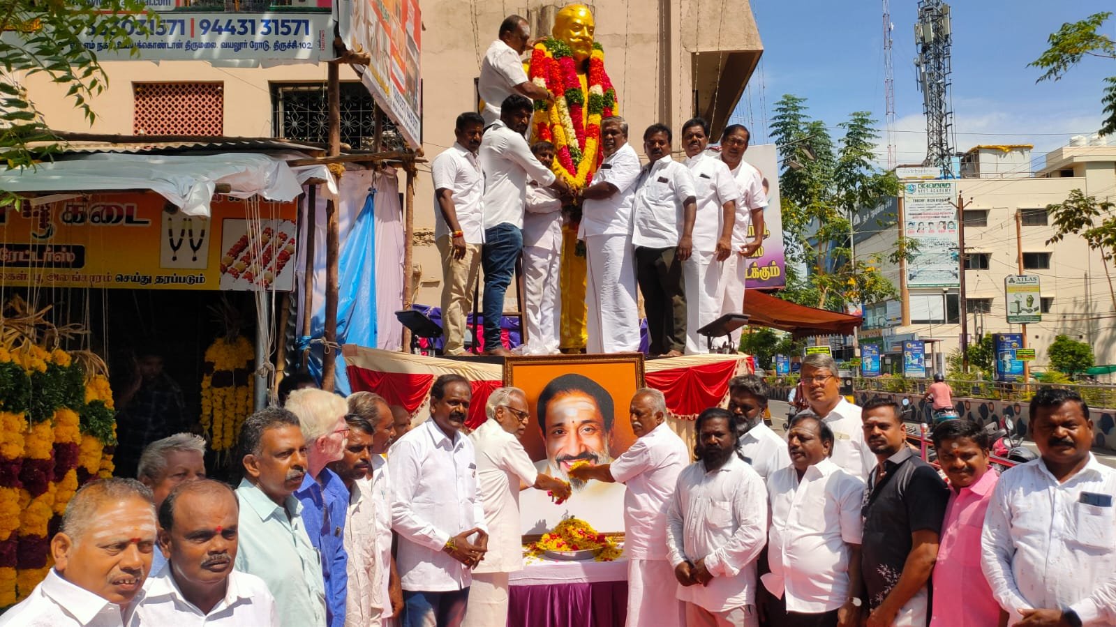 எம் சரவணன் தலைமையில் மாநில பேச்சாளர் சிவாஜி சண்முகம் முன்னாள் மாவட்ட தலைவர் ஜவகர் சிவாஜி மன்ற தலைவர் எடத்தெரு சீனிவாசன் பண்ணை கோபாலகிருஷ்ணன் ஆர் சி பிரபு ஆர்சி ராஜா தீப நகர் அப்துல் ஆதி முகமத் ஆகியோர் முன்னிலையில் மாலை அணிவித்து மரியாதை செலுத்தப்பட்டது.