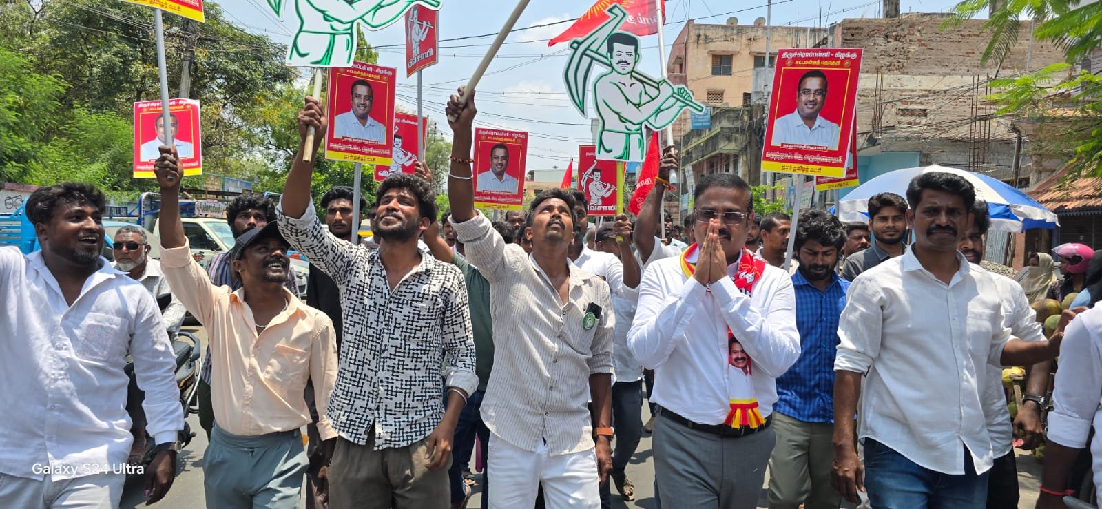 இந்த நிகழ்வின் சிறப்பம்சமாக, நாம் தமிழர் கட்சியின் தேர்தல் சின்னமான ‘விவசாயி’ சின்னத்தை முன்னிலைப்படுத்தும் வகையில், வேட்பாளர் கிருஷ்ணசாமி மற்றும் கட்சியின் முக்கிய நிர்வாகிகள் கையில் ஏர் கலப்பையை ஏந்தியபடி ஊர்வலமாக வந்தனர்.