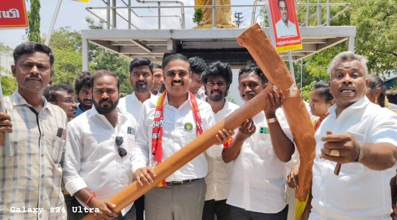 இந்த நிகழ்வின் சிறப்பம்சமாக, நாம் தமிழர் கட்சியின் தேர்தல் சின்னமான ‘விவசாயி’ சின்னத்தை முன்னிலைப்படுத்தும் வகையில், வேட்பாளர் கிருஷ்ணசாமி மற்றும் கட்சியின் முக்கிய நிர்வாகிகள் கையில் ஏர் கலப்பையை ஏந்தியபடி ஊர்வலமாக வந்தனர்.