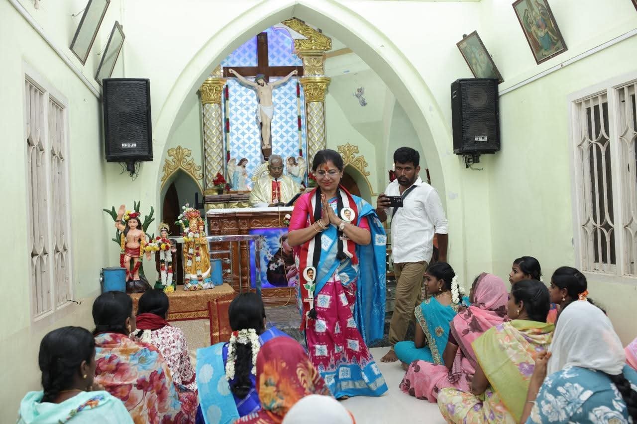 மத நல்லிணக்கம்: தேவாலயங்களுக்குச் சென்று பிரார்த்தனை செய்து, கிருத்துவ சமூக மக்களிடம் வாக்கு சேகரிப்பில் ஈடுபட்டார்.
