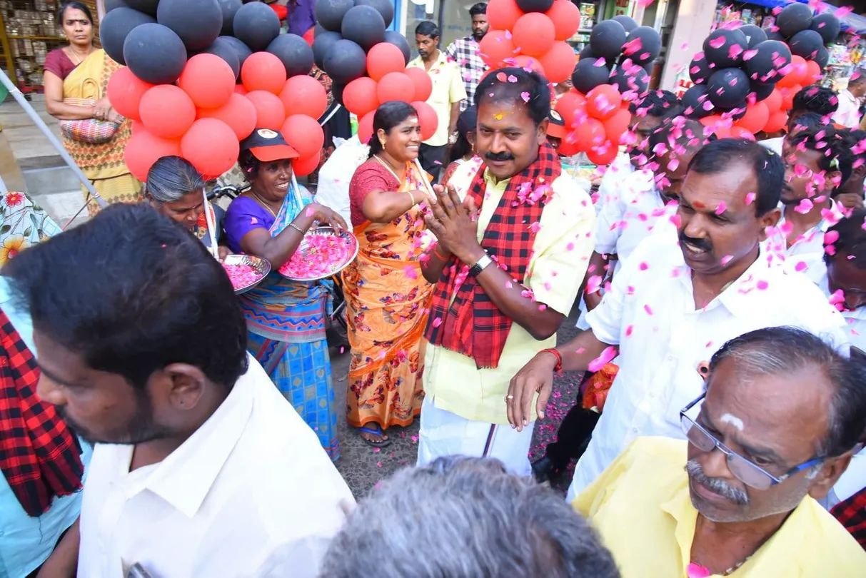 பரப்புரையின் போது, அவருக்கு அந்தப் பகுதி பொதுமக்கள் ஆரத்தி எடுத்தும், மலர் தூவியும் உற்சாக வரவேற்பு அளித்தனர். வீதி வீதியாகச் சென்ற வேட்பாளர் துரைராஜ், முதியவர்கள் மற்றும் பெண்களிடம் கனிவுடன் பேசி வாக்கு சேகரித்தார்.
