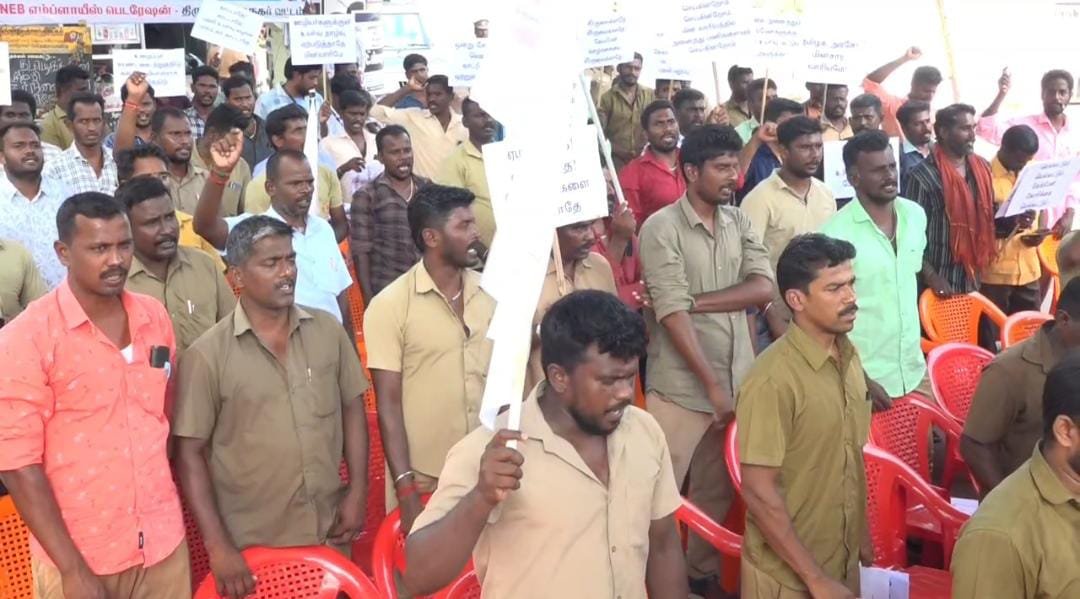 மின்சார வாரியத்தில் கள உதவியாளர்கள் நேரடி நியமன அறிவிப்பை கண்டித்தும், எந்தவித பணி வரன்முறையின்றி கேங்மேன் பணியாளர்களை அனைத்து பணியும் ஈடுபடுத்தி ஏமாற்றும் வாரியத்தை கண்டித்தும், ஐந்தாண்டு காலம் மின்சார வாரியத்திற்காக உழைத்த பணியாளர்களை கள உதவியாளராக மாற்றும் வரை tnps தேர்வாணையத்தின் கள உதவியாளர்கள் நேரடி அறிவிப்பை உடனடியாக ரத்து செய்ய வேண்டும் உள்ளிட்ட கோரிக்கைகளை வலியுறுத்தி கோஷங்கள் எழுப்பினர். இதில் மண்டல செயலாளர் ஆனந்தபாபு, மாவட்ட செயலாளர் இசக்கிதுரை, மாவட்ட தலைவர் ராஜேந்திரன் உட்பட நூற்றுக்கு மேற்பட்டோர் பங்கேற்றனர்.