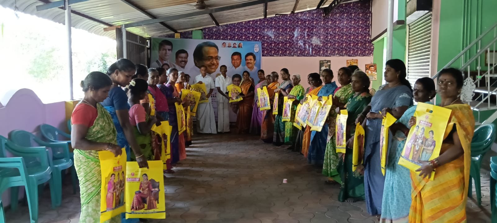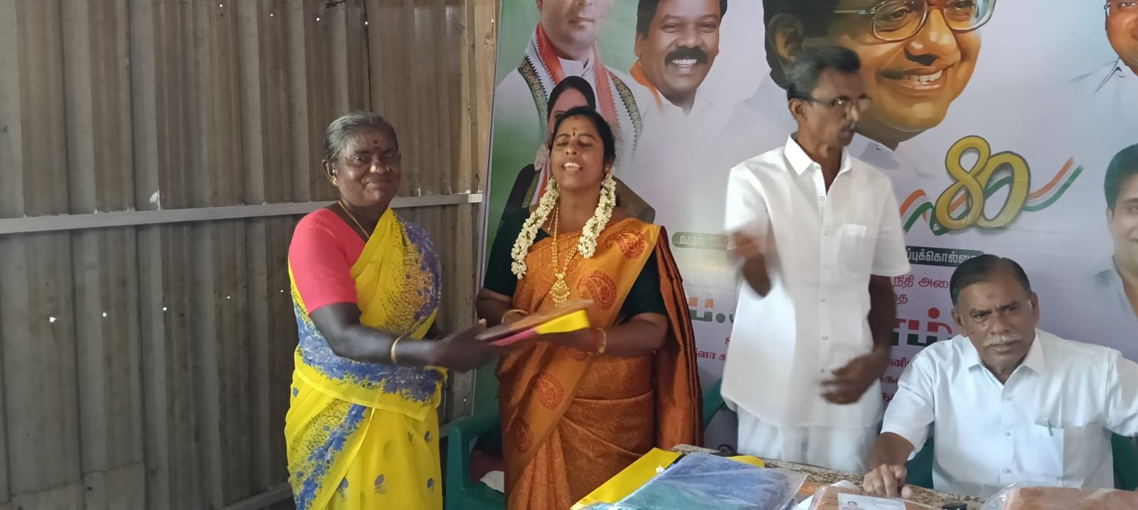 75 மகளிர்களுக்கு சேலை வழங்கப்பட்டது, மற்றும் மாவட்ட வட்டார கிளை மகளிர் காங்கிரஸ் நிர்வாகிகள் சிறப்பாக கலந்து கொண்டனர்.