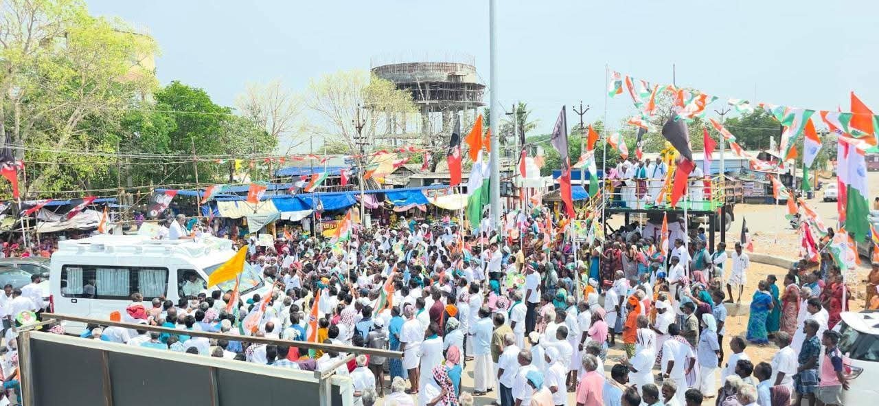 அப்போது லால்குடி தொகுதியில் 20 ஆண்டு காலம் திமுகவைச் சேர்ந்தவர் சட்டமன்ற உறுப்பினராக இருந்தும், இந்தப் பகுதி மிகவும் பின்தங்கி உள்ளது. மக்களுக்கு அடிப்படை தேவையான சாலை, குடிநீர் வசதிகள் செய்து தரப்படவில்லை. விவசாயிகள் மிகவும் அவல நிலையில் உள்ளனர். நெல்லை காயவைத்து பத்திரப்படுத்துவதற்கு குடோன் இல்லாமல் கஷ்டப்படுகின்றனர் . மக்களுக்கு போதுமான மருத்துவ வசதி இல்லை. பெண்கள் பாதுகாப்பற்ற நிலையில் உள்ளனர். திமுக ஆட்சியில் விலைவாசி விண்ணிற்கு சென்று உள்ளது. மாணவர்கள், இளைஞர்கள் போதைக்கு அடிமையாகி உள்ளனர்.