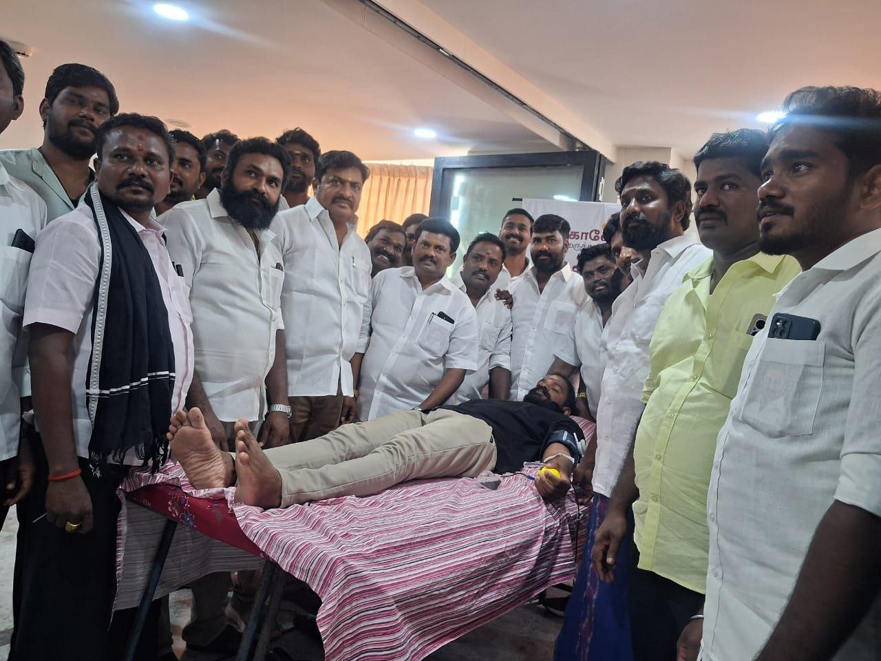 திருச்சியில் துணை முதலமைச்சர் உதயநிதி ஸ்டாலின் பிறந்த நாளை முன்னிட்டு திமுக இளைஞர் அணி சார்பில் மாபெரும் ரத்ததான முகாம் மாநகராட்சி மேயர் அன்பழகன் தொடங்கி வைத்தார்.