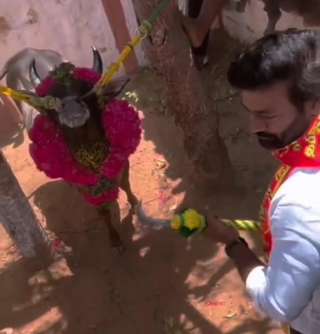 பாரம்பரிய உடையில் காளையுடன் களமிறங்கிய வேட்பாளரின் இந்தச் செயல், அந்தப் பகுதி ஜல்லிக்கட்டு ஆர்வலர்களிடையே பெரும் வரவேற்பைப் பெற்றுள்ளது.