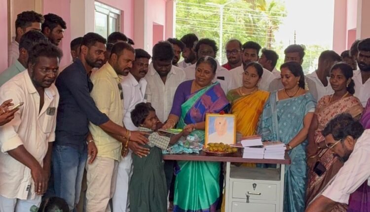 த வெ க கட்சி சார்பில் காமராஜர் பிறந்த நாளை முன்னிட்டு கல்வி உதவி வழங்கப்பட்டது