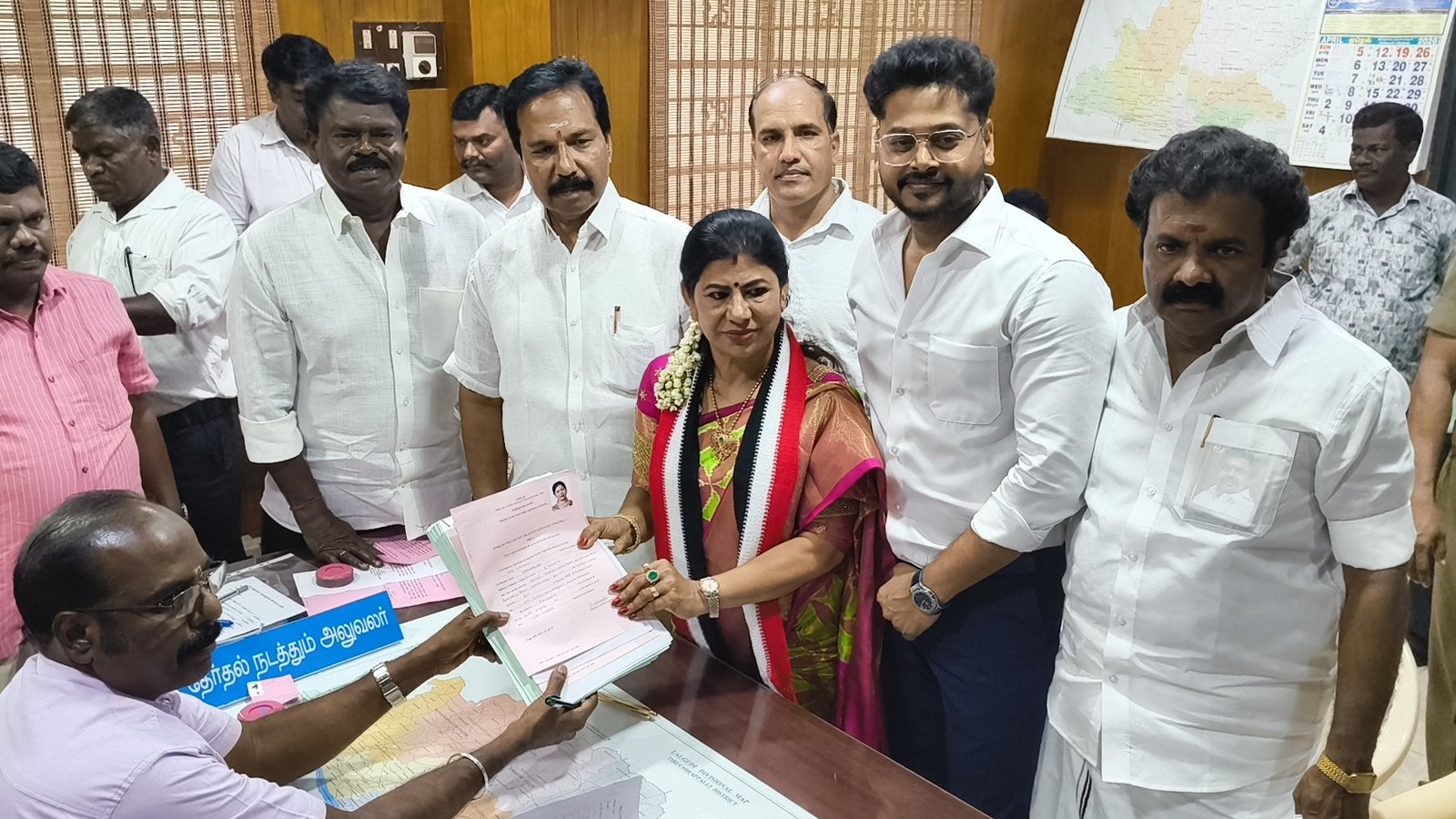 முன்னதாக, லால்குடி ரவுண்டானா பகுதியில் இருந்து ஆயிரக்கணக்கான அதிமுக தொண்டர்கள் மற்றும் கூட்டணி கட்சி நிர்வாகிகள் புடைசூழ ஊர்வலமாக வந்த அவர், உற்சாக வரவேற்புக்கு இடையே அலுவலகத்தை வந்தடைந்தார்.