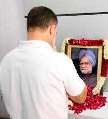 முன்னாள் பிரதமர் டாக்டர் மன்மோகன் சிங்கின் முதலாமாண்டு நினைவு தினத்தையொட்டி காங்கிரஸ் அலுவலகத்தில் மக்களவை எதிர்க்கட்சித் தலைவர் ராகுல் காந்தி அவருக்கு அஞ்சலி செலுத்தினார்.இந்தியாவை பொருளாதார ரீதியாக மேம்படுத்திய கொள்கைகள் மற்றும் நாட்டின் உலகளாவிய நிலையை வலுப்படுத்திய தொலைநோக்குப் பார்வை கொண்ட தலைவர் மன்மோகன் சிங் என்று அவர் தெரிவித்தார்.