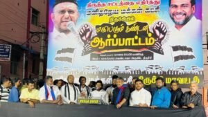 வக்ஃபு வாரியங்களை முடக்கி, வக்ஃபு சொத்துகளை ஆக்கிரமிக்க வழி வகுக்கும் வகையில் அரசமைப்புச் சட்டத்திற்கு விரோதமான பாரபட்சமான விதிகளைக் கொண்டிருக்கும் வக்ஃபு திருத்த மசோதா 2024-ஐ முஸ்லிம்களும், மதசார்பற்ற கட்சிகளும் கடுமையாக எதிர்ப்போம் எனவும், இந்த மசோதா அரசமைப்புச் சட்டம் சிறுபான்மை முஸ்லிம்களுக்கு அளித்துள்ள பல உரிமைகளை பறிக்கும் வகையிலும் இந்தியாவில் வாழும் முஸ்லிம்களை பாரபட்சமாக கருதும் வகையில் திருத்தங்கள் கொண்டு வரப்பட்டதற்கு கண்டனம் தெரிவித்தும் கோஷங்கள் எழுப்பப்பட்டது. இறுதியாக கிழக்கு மாவட்ட மமக செயலாளர் அஷ்ரப் அலி நன்றியுரையாற்றினார்.