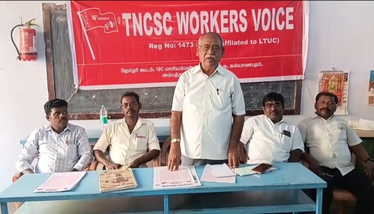 TNCSC ஒர்க்கர்ஸ் வாய்ஸ் மாநில பொதுக்குழு கூட்டம் திருச்சி புத்தூர் நால் ரோடு அருகே தனியார் மண்டபத்தில் நடைபெற்றது. இந்த பொதுக்குழு கூட்டத்தில்