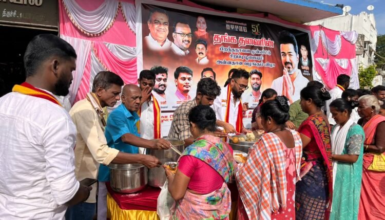 த.வெ.க திருச்சி மேற்கு சட்டமன்ற தொகுதி சார்பில் தளபதி பிறந்தநாள் முன்னிட்டு சிறப்பு பூஜையுடன் காலை உணவு வழங்கப்பட்டது