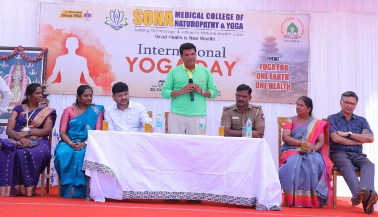 சோனா இயற்கை மருத்துவம் மற்றும் யோகா மருத்துவக் கல்லூரி சார்பில் “ஒரே பூமி, ஒரே ஆரோக்கியம் யோகா” என்ற உலகளவிய தலைப்பை மையமாக கொண்டு சர்வதேச யோகா தின விழா கொண்டாடப்பட்டது