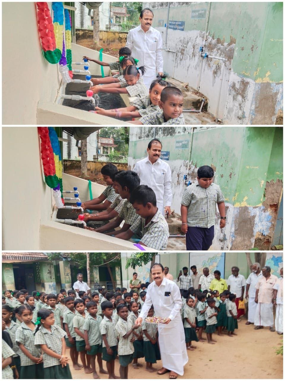 ஊ.ஒ.தொ. பள்ளியில் தொட்டியுடன் கூடிய கை கழுவும் குழாய் திறப்பு-ஒன்றிய கவுன்சிலர் பஜீர் அகமது