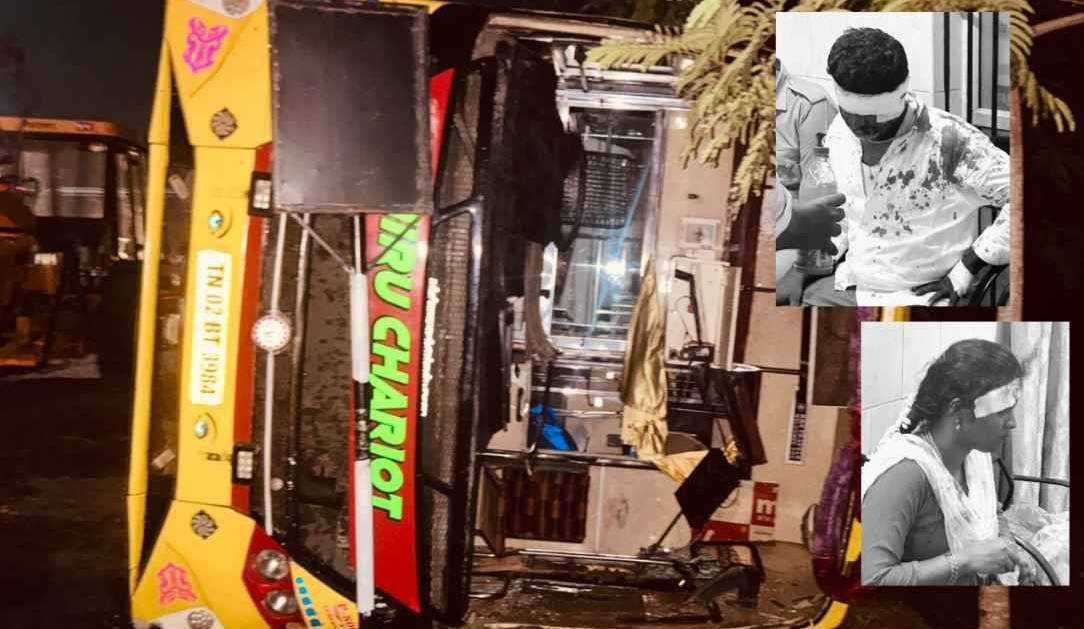 முதுகுளத்தூரில் இருந்து சென்னை சென்ற தனியார் பஸ் கவிழ்ந்து பயணிகள் படுகாயம்