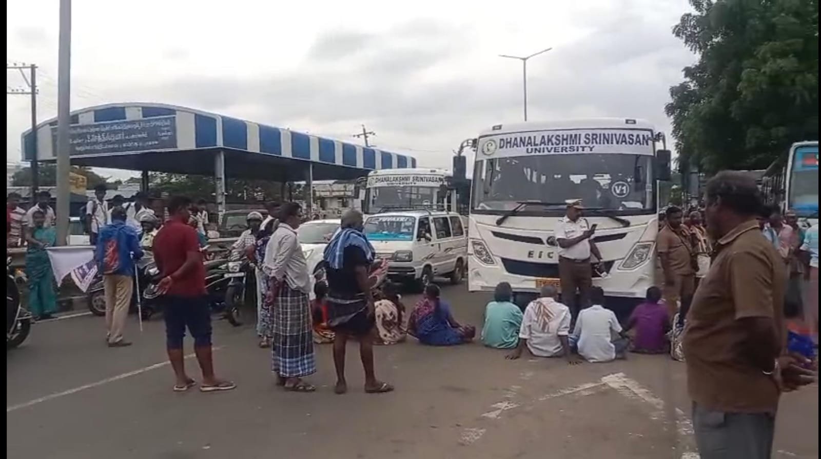 இதனால் பரபரப்பு ஏற்பட்டது உடனடியாக இச்சம்பவம் பற்றிய தகவல் அறிந்தது திருவெறும்பூர் போலீசார் மற்றும் போக்குவரத்து பிரிவு போலீசார் சம்பந்தப்பட்ட போராட்டக்காரர்களிடம் பேச்சுவார்த்தை நடத்தி சாலை மறியல் போராட்டத்தை கைவிட செய்தனர்.