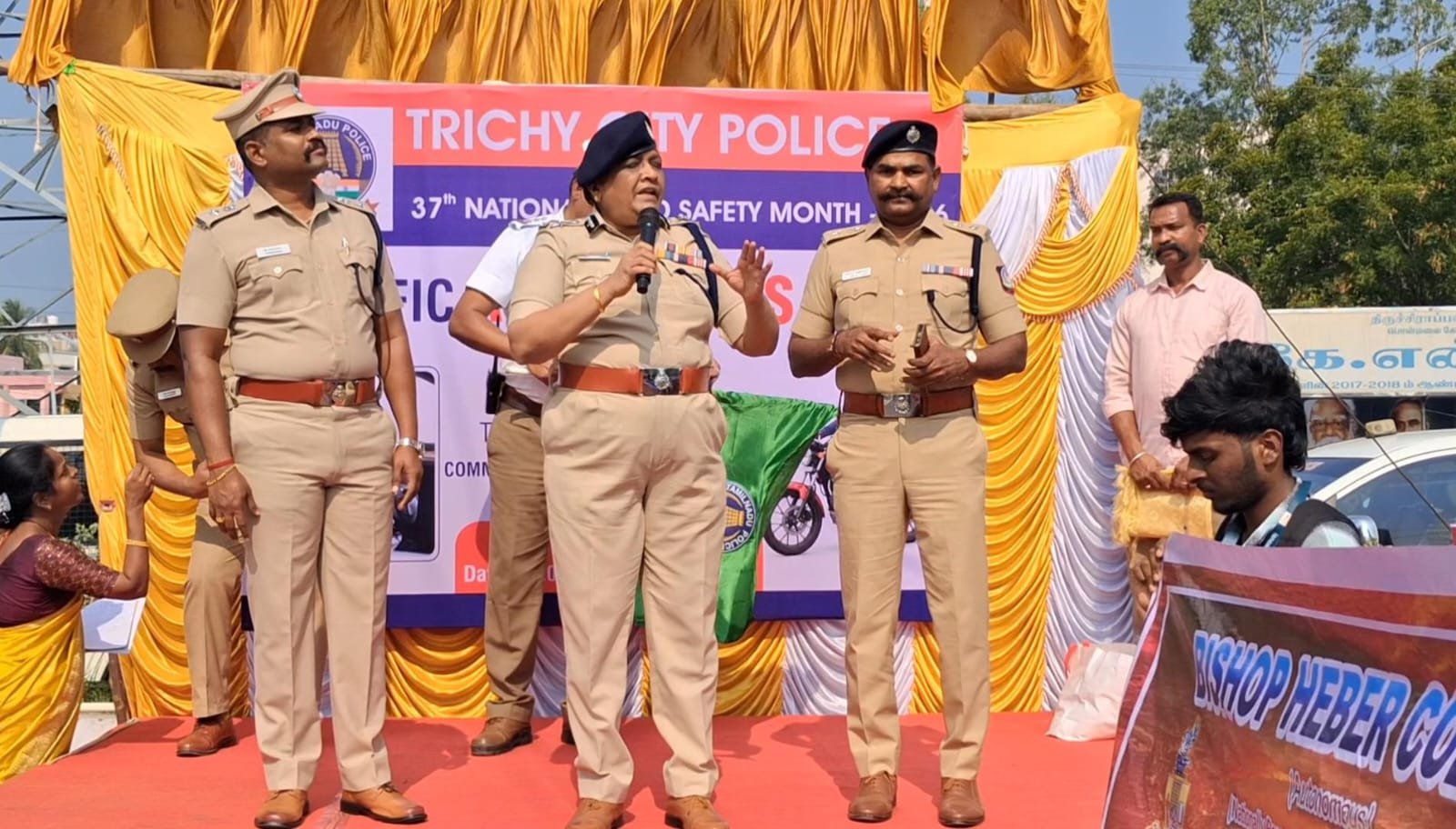 இப்பேரணியை திருச்சி மாநகர காவல் துறை ஆணையர் காமினி கொடியசைத்து துவக்கி வைத்தார் . இதில் சாலை விதிகளை மதித்து சமுதாயத்திற்கு முன்னுதாரமாக நடக்க வேண்டும் வாகனம் ஓட்டுவதால் விபத்துக்கள் ஏற்படுவதை தடுக்க வேண்டும் காவலர்களின் போக்குவரத்து சைகைகளை கடைபிடிக்க வேண்டும் மது போதையில் வாகனம் ஓட்டி அப்பாவி உயிர்களையும் பலியாக்க கூடாது .