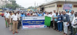 36 வது ஆண்டு சாலை பாதுகாப்பு மாதத்தை முன்னிட்டு தமிழ்நாடு அரசு போக்குவரத்து கழகம் கும்பகோணம் கோட்டம் சார்பில் பல்வேறு விழிப்புணர்வு நிகழ்ச்சிகள் நடத்தப்பட்டு வருகிறது. அந்த வகையில் இன்று மத்திய பேருந்து நிலையம் பகுதியில் சாலை பாதுகாப்பு விழிப்புணர்வு இரு சக்கர வாகன பேரணி நடைபெற்றது. இப்பேரணியை வட்டாரப் போக்குவரத்து அலுவலர்கள் நடராஜன், சுரேஷ் பாபு ஆகியோர் தொடங்கி வைத்தனர். தொடர்ந்து சாலை பாதுகாப்பு விழிப்புணர்வு துண்டு பிரசுரங்களை பொது மக்களுக்கு வழங்கினர்.