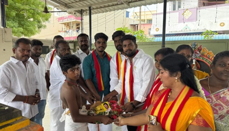 தளபதி விஜய் 51வது பிறந்தநாள் முன்னிட்டு திருவரங்கம் சட்டமன்ற தொகுதியில் ஸ்ரீ துர்கை மாரியம்மன் கோவிலில் சிறப்பு அர்ச்சனை