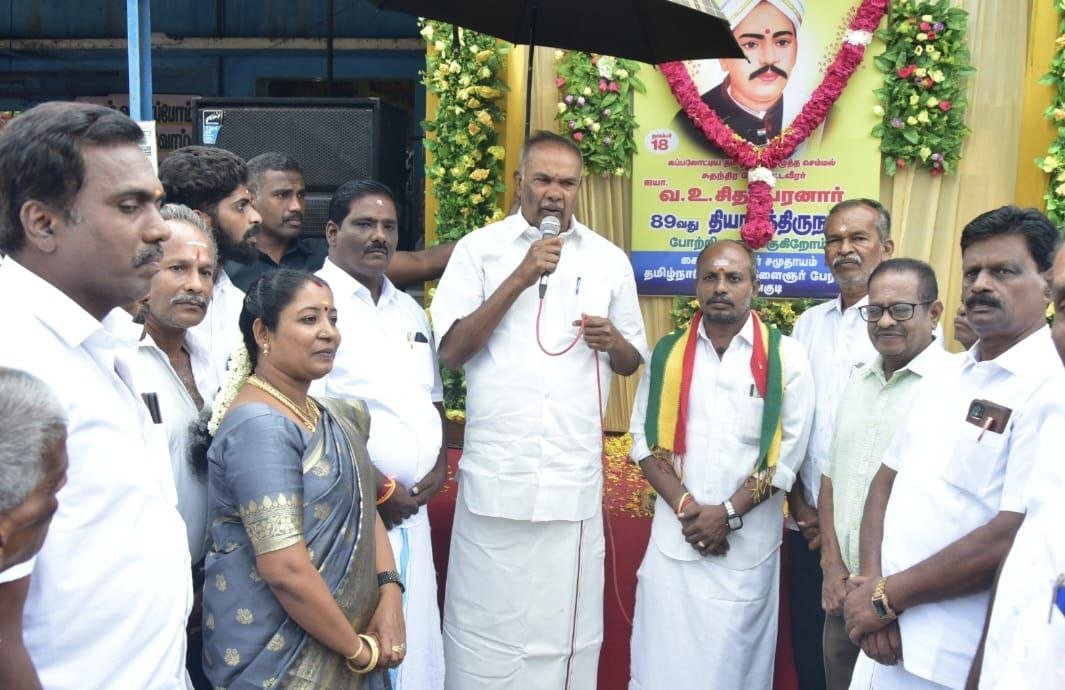 அவருடன், தமிழக முன்னாள் அமைச்சர் டிபிஎம் மைதீன்கான், பாளையஙகோட்டை தொகுதி சட்டமன்ற உறுப்பினர் மு. அப்துல் வகாப்,நெல்லை மாநகராட்சி மேயர் கோ. ராம கிருஷ்ணன், துணை மேயர் கே. ஆர். ராஜூ உட்பட பலர், கலந்து கொண்டனர். இந்த நிகழச்சியில் பேசிய சபாநாயகர், “சுதந்திர போராட்டத்தில் ஈடுபட்ட தியாகிகளை நினைவு கூர்ந்து, அவர்களை போற்றிப்புகழும், நன்றியுள்ள சிறந்த அரசாக, தமிழ்நாடு அரசு திகழுகிறது!”- என்று, பாராட்டினார். முன்னதாக, பணகுடி பேருந்து நிலையத்தில், அலஙகரித்து வைக்கப்பட்டிருந்த வ.உ.சி. யின் திருவுருவப்படத்திற்கு, சபாநாயகர், “மலர்மாலை” அணிவித்து “மரியாதை” செய்தார்.