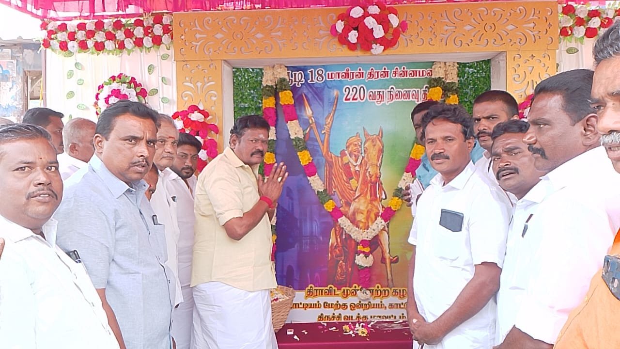 பேரூராட்சி 1 வது வார்டு செயலாளர் பேரூராட்சி கவுன்சிலர் சிவஜோதி பாலசுப்பிரமணியன் தொட்டியம் நகர இளைஞரணி வேட்பாளர் பிரகாஷ் அண்ணா நகர் ராம்குமார் ஒன்றிய பிரதிநிதி காட்டுப்புத்தூர் ஆசை தம்பி நத்தம் குறிஞ்சி நகர் பழனிசாமி மற்றும் மாவட்ட ஒன்றிய நகர நிர்வாகிகள் காட்டுப்புத்தூர் பேரூராட்சி வார்டு கழக செயலாளர்கள் ஊரக உள்ளாட்சி பிரதிநிதிகள் பொதுமக்கள் விவசாயிகள் சமூக அலுவலர்கள் கலந்து கொண்டு மலர்கள் தூவி வீரவணக்கம் செலுத்தினர்