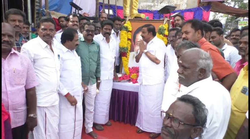 நடிகர் திலகம் சிவாஜி கணேசனின் பிறந்தநாளை ஒட்டி திருச்சி அரசு மருத்துவமனை அருகே உள்ள சிலையின் கீழ் வைக்கப்பட்டிருந்த திரு உருவ படத்திற்கு நகராட்சி நிர்வாக துறை அமைச்சர் கே என் நேரு மாலை அணிந்து மரியாதை செலுத்தினார் அதற்கு பின்பு செய்தியாளர்களை சந்தித்த அவர்