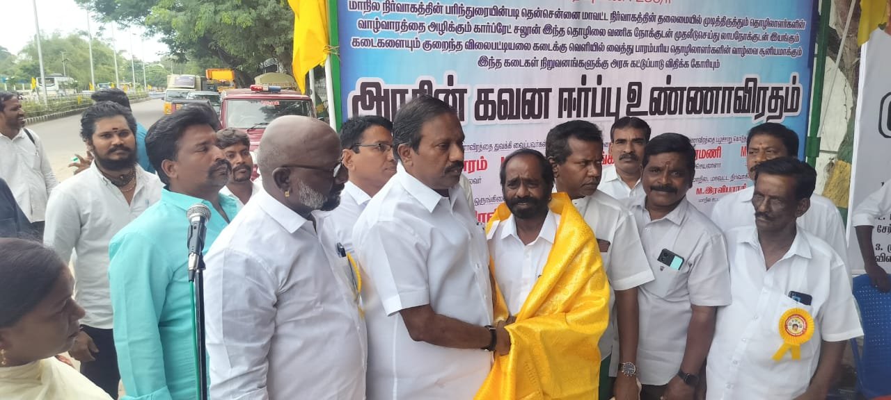 தமிழ்நாடு முடி திருத்தும் அழகு கலை மற்றும் அமைப்புசாரா தொழிலாளர் நல சங்கம் அரசின் கவன ஈர்ப்பு உண்ணாவிரத போராட்டம்